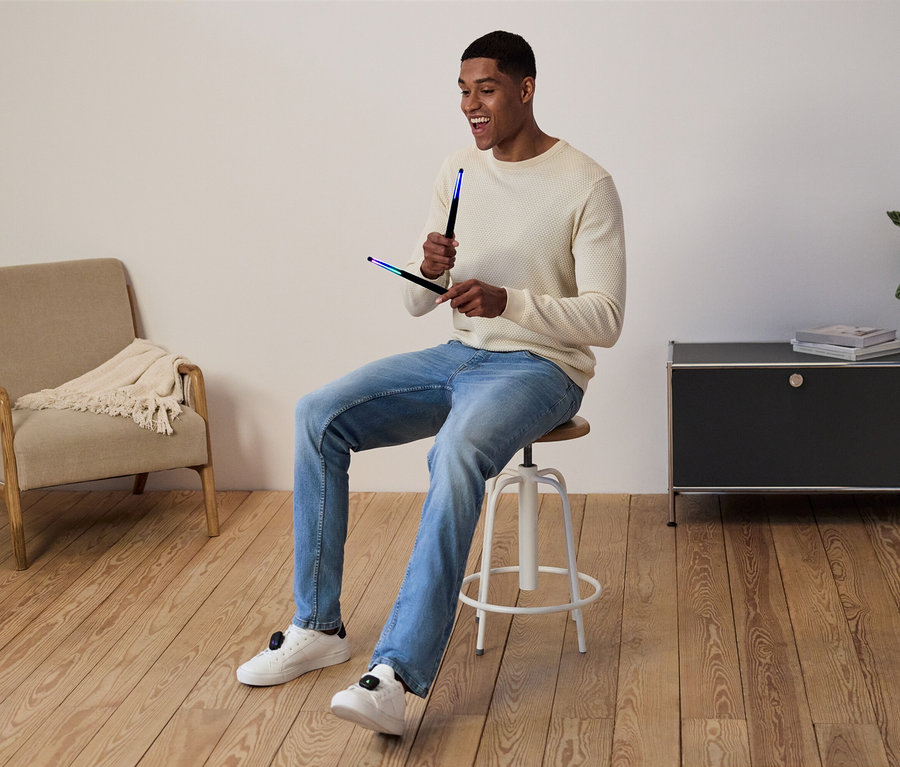 • Leuchtende Drumsticks, LED-Anzeige am Fußsensor und Audiokonverter