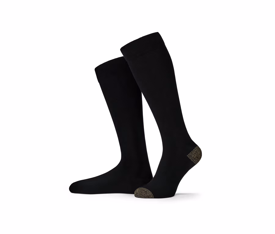 Ob langes Stehen oder langes Sitzen – das Ergebnis sind häufig müde Beine und Füße. Um dem vorzubeugen, zum Beispiel bei der Arbeit, im Zug oder im Flugzeug, zieht man am besten Stützstrümpfe wie diese an.