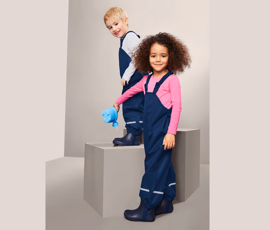 Die Hose hat elastische Y-Träger, die sich je nach Größe in der Länge verstellen lassen und an den Beinabschlüssen gibt es Fußstege, die dafür sorgen, dass die Hosenbeine beim Toben und Spielen nicht hochrutschen. So ist jederzeit für einen perfekten Sitz gesorgt. Auf Vorder- und Rückseite gibt es Reflektoren für eine bessere Sichtbarkeit und ein beschreibbares Namensschild verhindert Verwechslungen. Mit ihrem Taftfutter lässt sich die Hose auch kinderleicht an- und ausziehen.