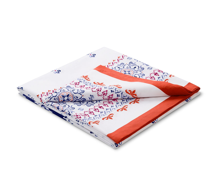Dieser Renforcé-Überwurf setzt mit seinen frischen, freundlichen Farben und dem ornamentalen Muster einen dekorativen Akzent. Er ist in feiner, dicht gewebter Qualität aus reiner Bio-Baumwolle gefertigt und dadurch besonders weich, leicht und glatt. Er lässt sich vielseitig einsetzen und kann als Tagesdecke, Tischdecke, Sofaüberwurf oder Sesselüberwurf genutzt werden.