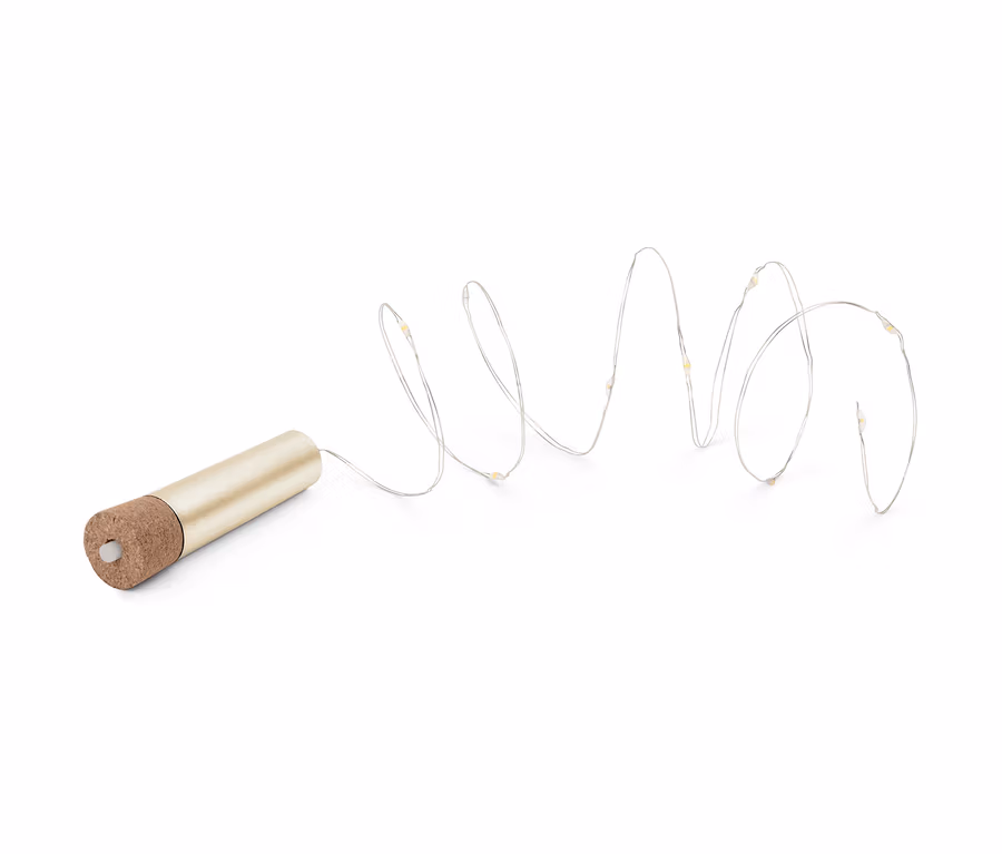 - Ein- und Ausschalten des Flaschenlichts über einen Druckknopf an der Oberseite des Korkens