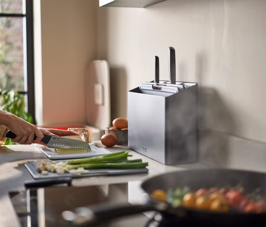 - Elevate™ Messer mit japanischen Edelstahlklingen und integrierten Auflagen für mehr Hygiene und weniger Schmutz