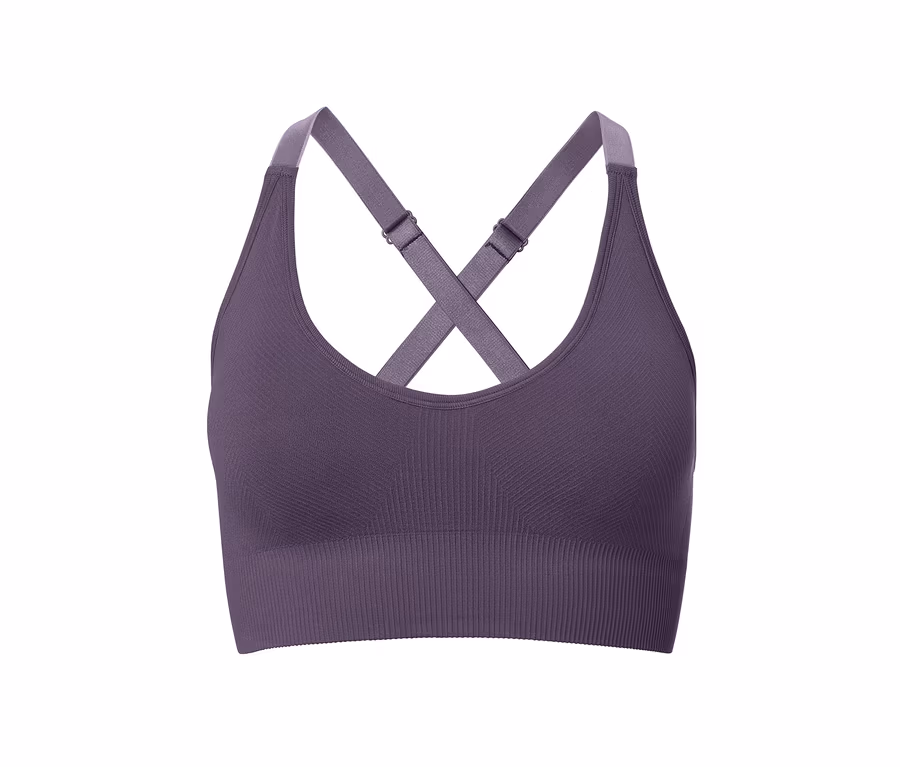 Wer sich als Frau viel bewegt, will sicher sein, dass auch die Brust bei den sportlichen Aktivitäten die richtige Unterstützung erhält. So wie bei diesem Sport-Bustier, das dank unterschiedlicher Strickzonen, breitem Unterbrustgummi und breiten Trägern sowie Elasthan für optimalen Halt beim Workout sorgt.