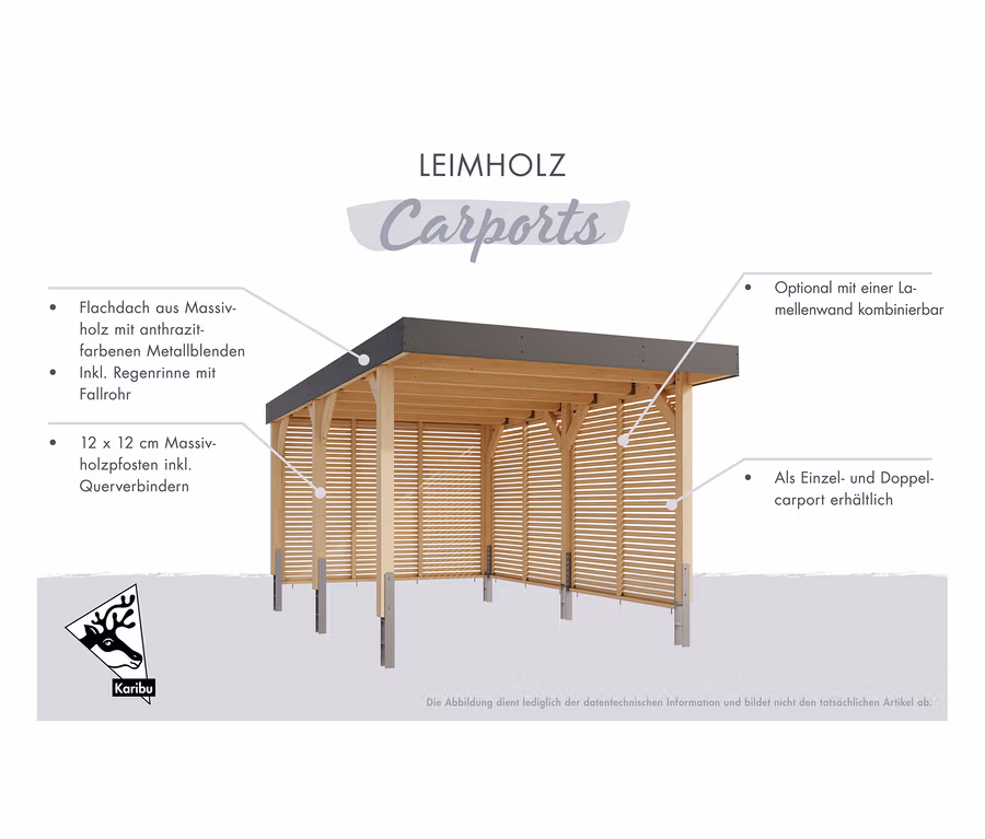 Karibu Doppel-Carport mit Seiten- und Rückwand