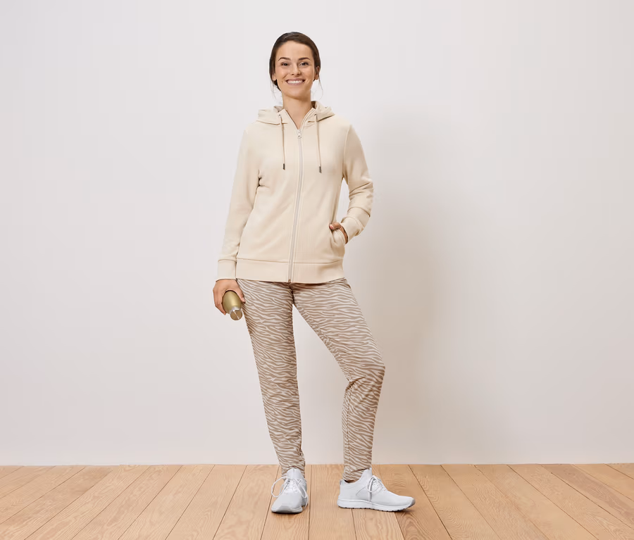 Sweathose, beige-weiß