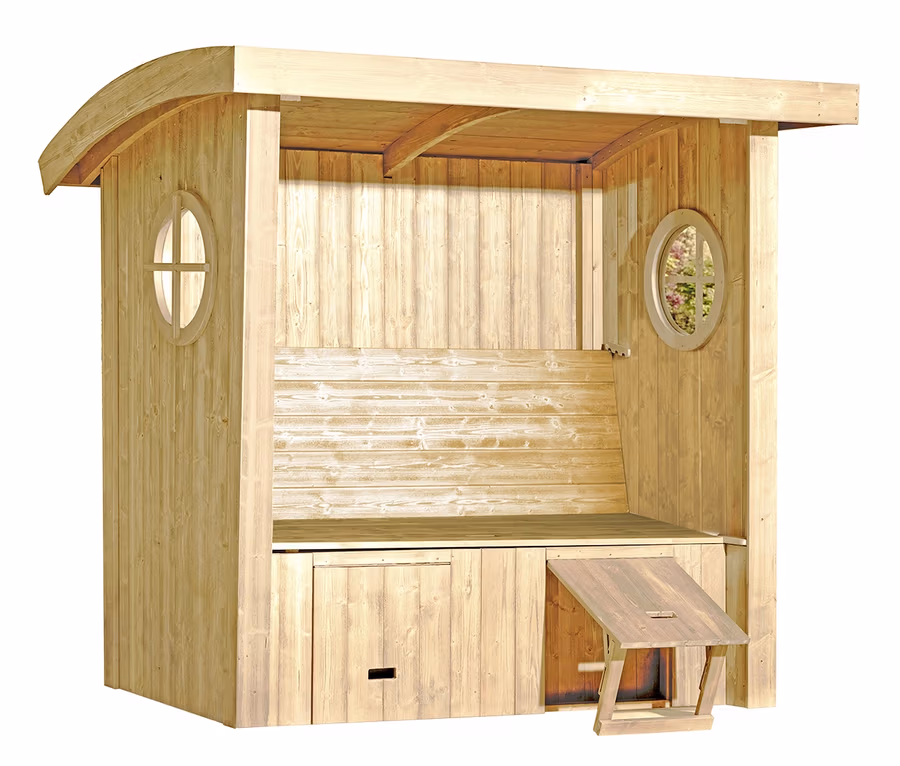 - Wandstärke 19 mm: Als Gerätehaus und Rückzugsort bei sommerlichen Temperaturen nutzbar