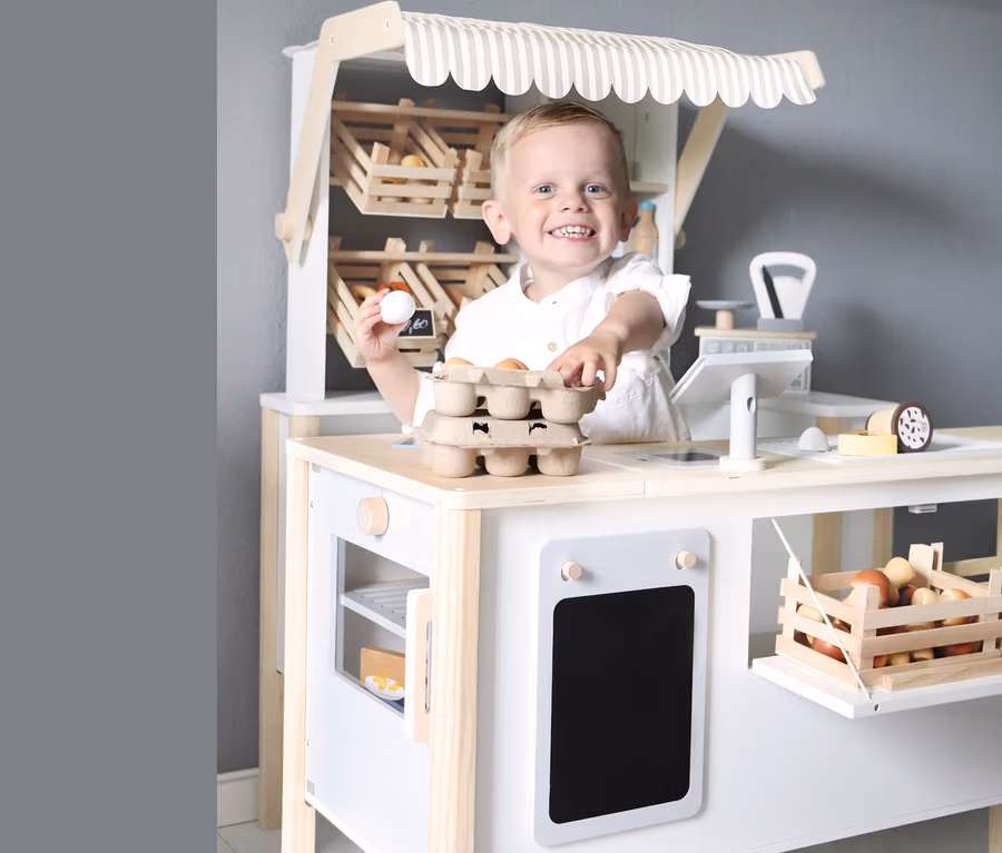 - Multifunktionaler Kaufmannsladen, der sich flexibel anpasst und vielseitige Spielmöglichkeiten bietet