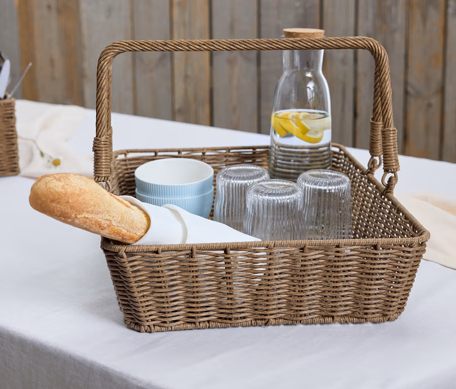 - Robustes Metallgestell mit Kunststoff-Korbgeflecht – feucht abwischbar