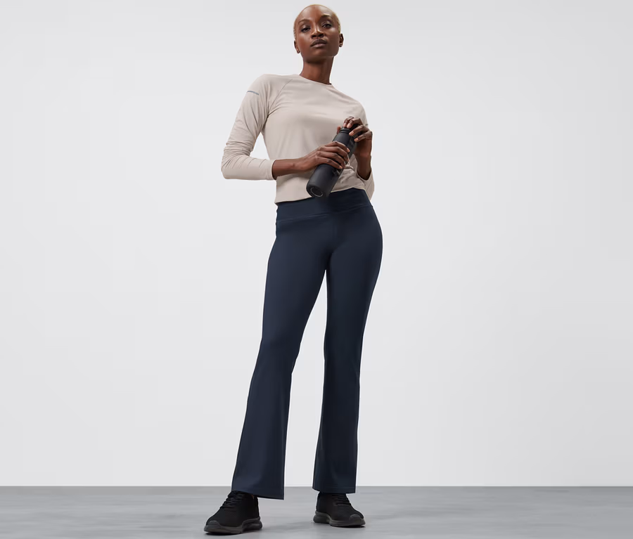 - Eng anliegende Sporthose mit ausgestelltem Bein