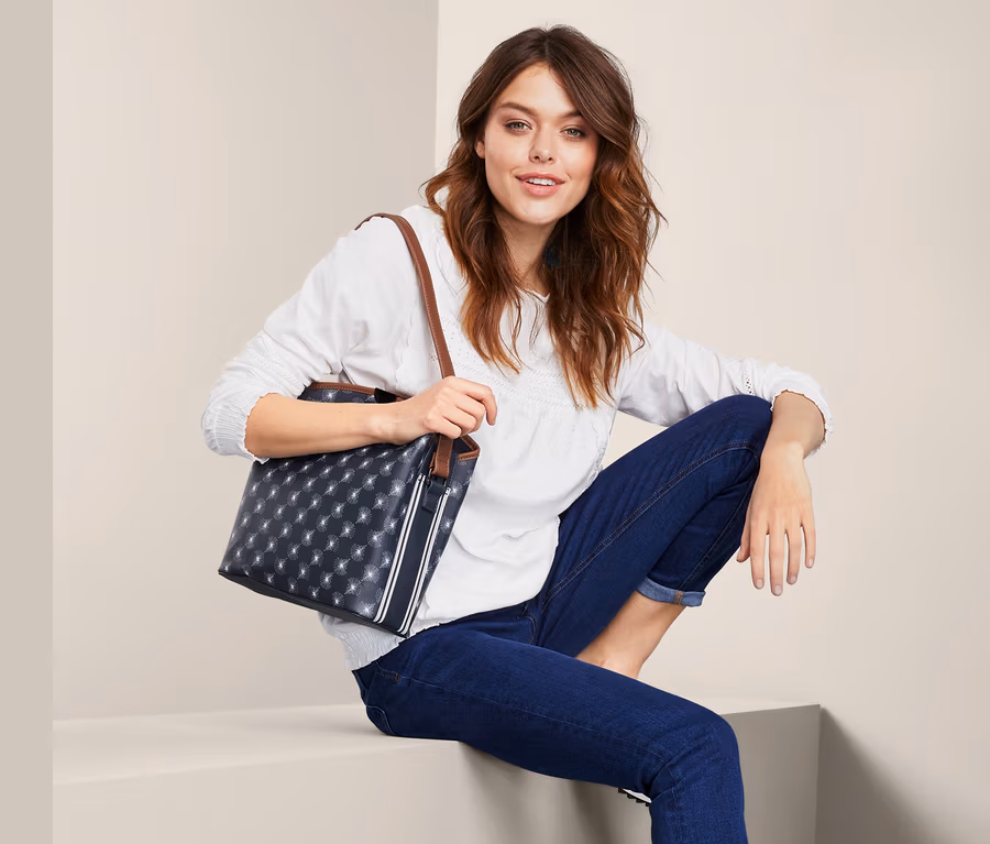 Diese elegante Umhängetasche sieht mit ihrem hochwertigen Saffian-Kunstleder und dem zeitlosen Alloverprint nicht nur besonders schick aus, sie ist auch besonders vielfältig. Sie hat sowohl Tragehenkel als auch einen abnehmbaren, längenverstellbaren Schultergurt, wodurch man sie als Handtasche, Schultertasche oder Crossbag tragen kann – je nach Anlass oder Outfit.