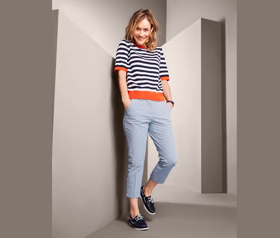 Der hohe Elasthananteil sorgt für einen formbeständigen, perfekten Sitz mit hohem Tragekomfort. Natürlich dürfen auch bei dieser Sommerhose mit Bio-Baumwolle zwei Eingrifftaschen auf der Vorderseite und zwei Zier-Gesäßtaschen nicht fehlen.