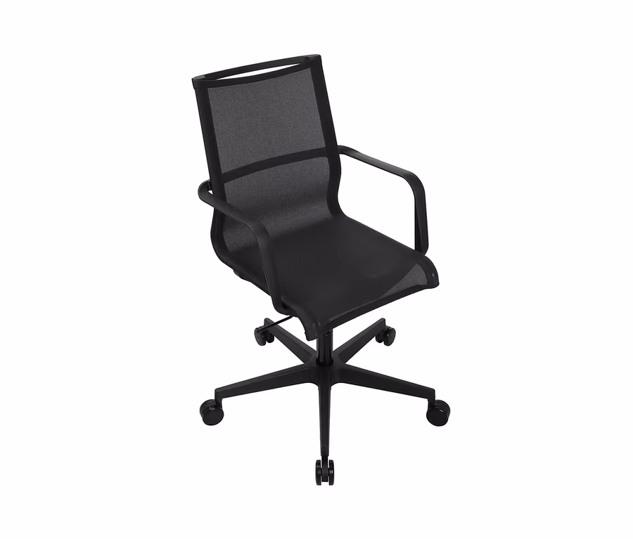 Vor allem aber sorgt der Schreibtischstuhl dafür, dass das Arbeiten so rückenschonend wie möglich vonstatten geht. Das patentierte SITNESS-Gelenk ermöglicht ein bewegliches 360°-Sitzen – der Korpus folgt dabei den Bewegungen der sitzenden Person und unterstützt so die Rückenmuskulatur. Die Sitzhöhe lässt sich mit der TÜV-geprüften Sicherheitsgasfeder stufenlos von etwa 44 bis 57 Zentimeter verstellen und der selbsttragende, atmungsaktive Netzbezug sorgt für hohen Sitzkomfort. Der Stuhl ist made in Germany, hat harmonisch mit dem Korpus verbundene, ergonomisch geformte Kunststoffarmlehnen, ein großes, standsicheres Kunststofffußkreuz mit lastabhängig gebremsten Sicherheitsrollen – und ist mit dem GS-Siegel ausgezeichnet.