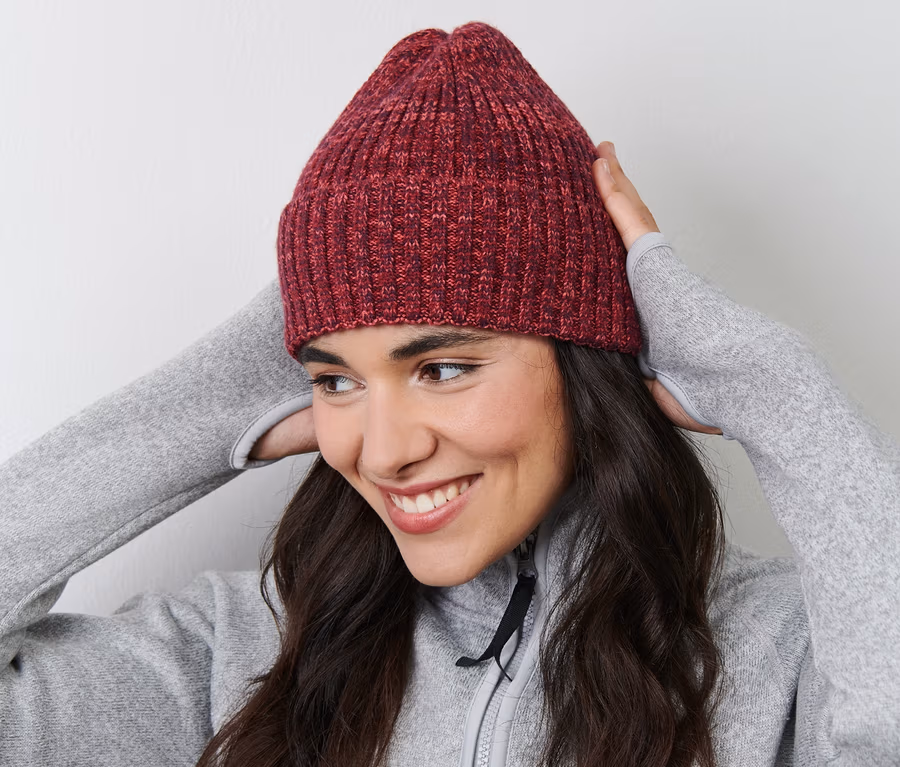 - Diese Mütze beinhaltet Fasern aus nachhaltigem Holz.