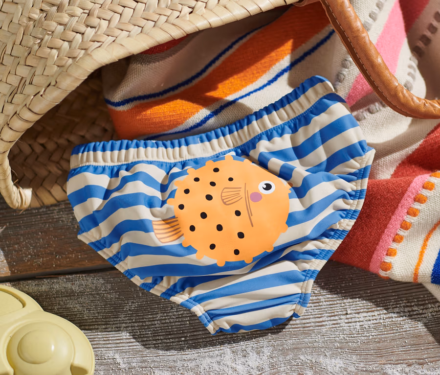 - Blau-beige gestreift mit gelbem Kugelfischprint