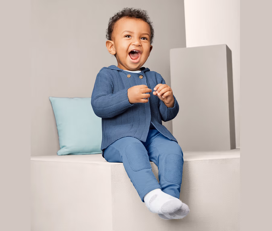 Diese Strickjacke für Babys und Kleinkinder ist nicht nur superschick, sie ist auch superbequem. Mit ihrer reinen Bio-Baumwolle aus nachhaltigem Anbau liegt sie jederzeit angenehm weich am Körper und in die Kapuze kann man sich wunderbar einkuscheln. Die Jacke hat zwei Taschen und geschlossen wird sie mit Knöpfen im Brustbereich, der Bauch bleibt frei – da drückt und kneift also garantiert nichts.