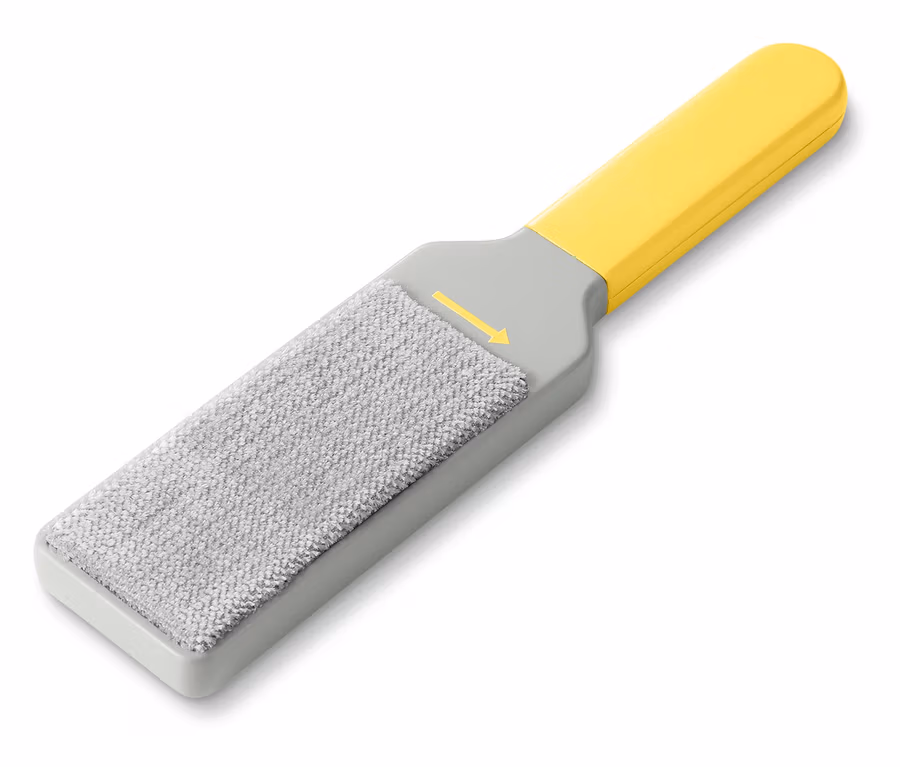 Die Bürste ist ein echter Allrounder und natürlich außer für Kleidung auch für Möbelpolster, Teppiche und andere Textilien geeignet: Einfach in Richtung der aufgedruckten Pfeile über den Stoff bürsten und schon ist er wieder vorzeigbar. Und nach der Reinigung wird sie selbst gereinigt: Die Bürste kommt mit einem Aufbewahrungsfuß, der gleichzeitig als Reinigungsstation dient. Einfach ein paarmal auf und ab bewegen löst die Haare von der Bürste.