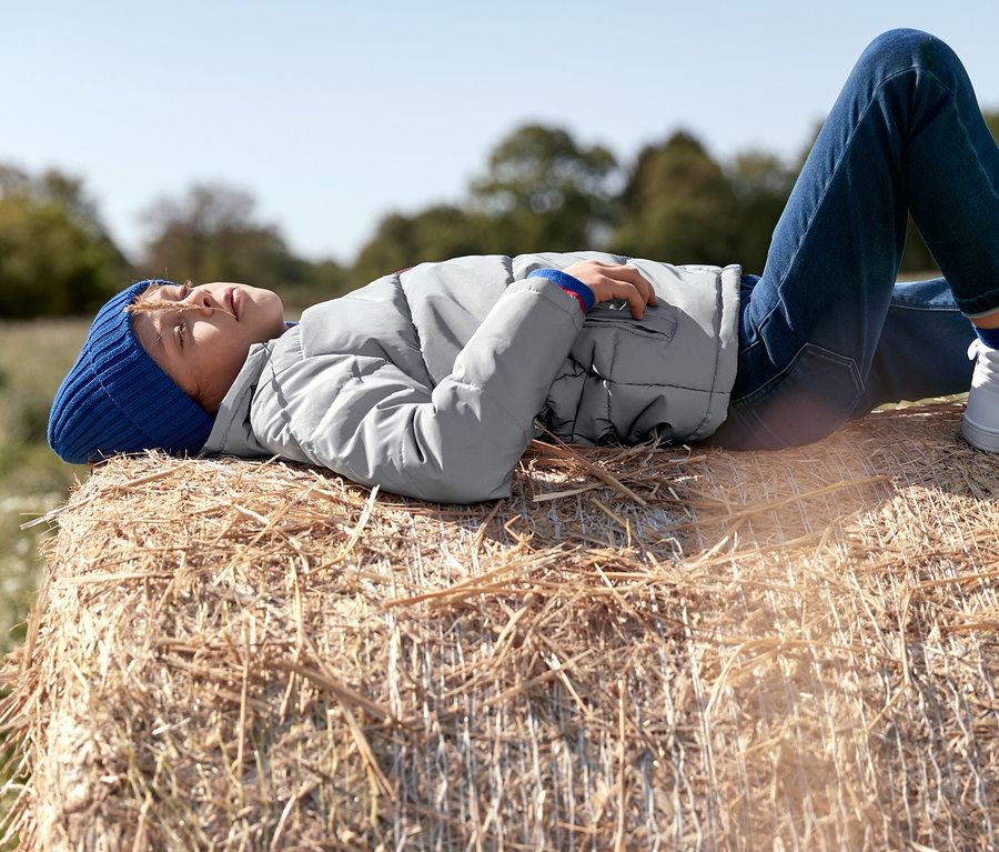 - 51% Baumwolle (aus ökologischem Anbau), 46% Polyester, 2% Viskose, 1% Elasthan