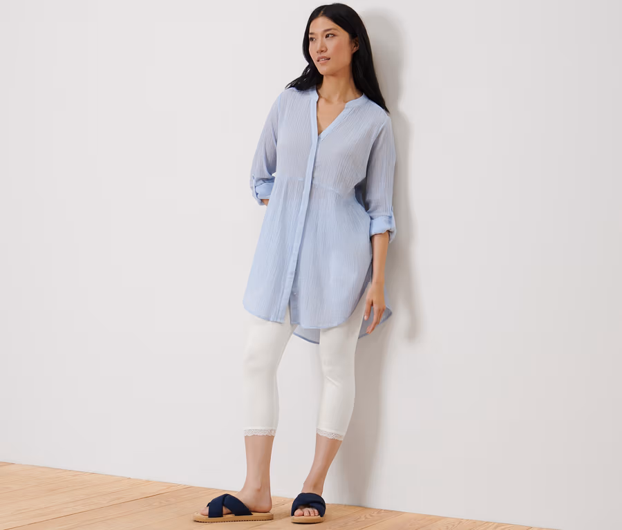 3/4-Leggings mit Spitzenborte, weiß
