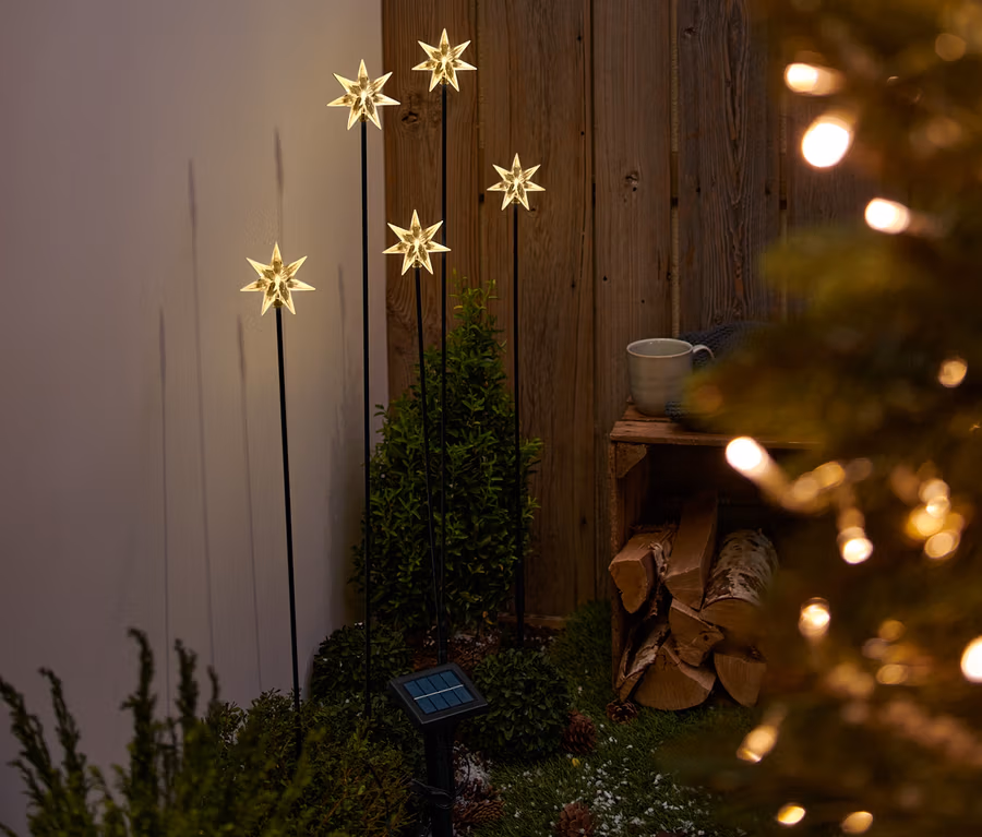 - 5 Leuchtstäbe mit LED-Sternen in 2 unterschiedlichen Höhen