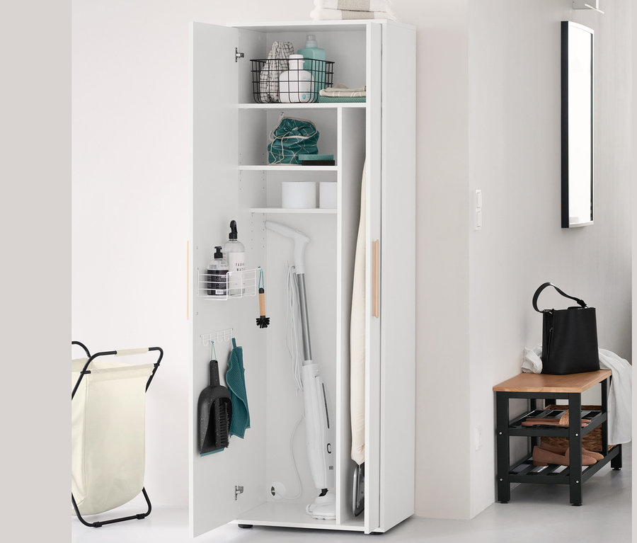- Bedarfsgerechte Raumaufteilung zum Verstauen von Bügelbrett, Staubsauger etc.