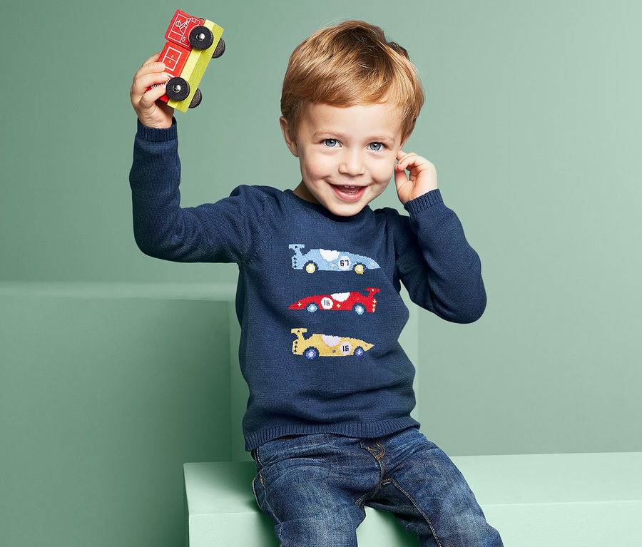 Wenn dieser Feinstrick-Pullover mal nicht das Zeug zum neuen Lieblingspulli hat: Er ist aus hautsympathischer reiner Baumwolle gefertigt und sitzt superbequem, hat Rippbündchen an Halsausschnitt, Ärmeln und Saum – und spätestens mit seinem coolen Auto-Einstrick macht er endgültig das Rennen.