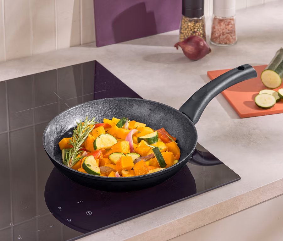 - Mit PFAS-freier Antihaftbeschichtung – ideal zum fettarmen Braten, vermindert Anbrennen und Festsetzen, schützt vor Kratzern, leicht zu reinigen