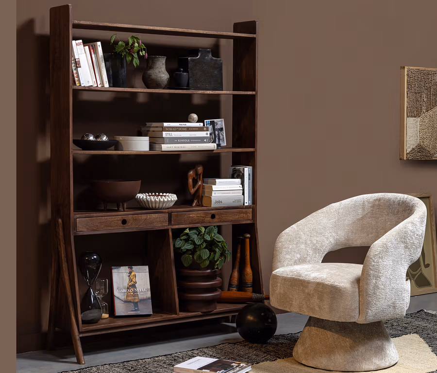 - Offene Vitrine hergestellt aus Mangoholz mit Walnuss-Finish