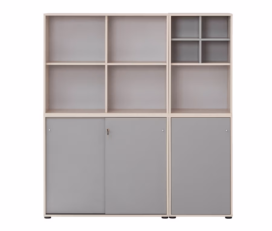 - Die Kombination aus offenem und geschlossenem Stauraum sowie unzählige Kombinationsmöglichkeiten der einzelnen Schränke und Regale bieten für jeden Arbeitsbereich die optimale Lösung