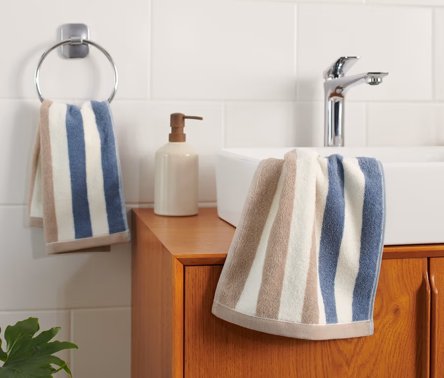 2 hochwertige Gästehandtücher, blau-weiß-beige