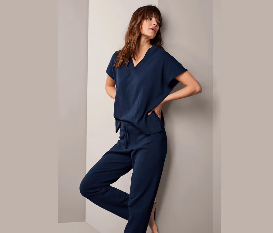 Das perfekte Relax-Outfit für schöne Momente zu Hause liegt besonders leger am Körper – und dieses Feinstrick-Loungewear-Sweatshirt ist dabei mit seinem hohen Anteil an Bio-Baumwolle auch noch wunderbar weich und angenehm zu tragen. Elasthan sorgt bei dem Damenoberteil für Formbeständigkeit, einen perfekten Sitz sowie zusätzlichen Tragekomfort. Und mit seinem klassischen Blau lässt es sich auch wunderbar mit anderer Wohlfühlkleidung kombinieren.