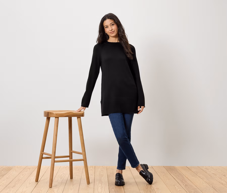 - Hochgeschlossener Rundhalsausschnitt mit Rippbündchen