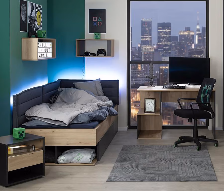 - Geräumiger Arbeitsplatz mit Ablageflächen für konzentriertes Lernen