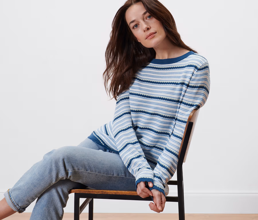 - Streifenmuster mit Wellen-Akzenten in verschiedenen Blautönen, Hellgrün und Weiß