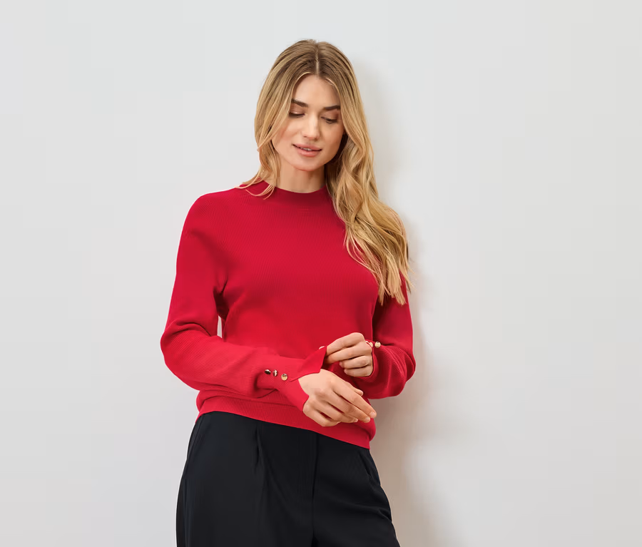 • Ärmelabschluss mit Schlitz und goldfarbenen Zier-Knöpfen