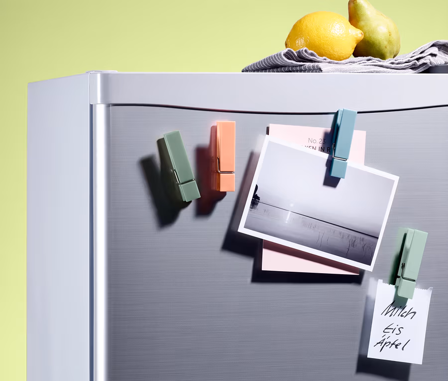 Diese vier Kühlschrankmagnete bringen mit ihren sanften Pastelltönen ein paar hübsche Akzente in die Küche. Mit den starken Magneten lassen sich Postkarten, Bilder oder Notizen an jeder magnetischen Fläche anbringen und die Klammer bietet noch mal Platz für zusätzliche Grüße an die Lieben. Ideal auch für Memoboards im Flur oder Eingangsbereich.