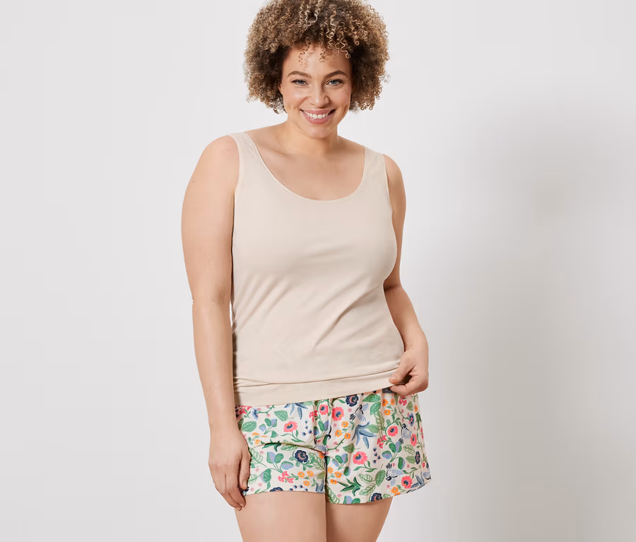 - 1x korallenrot, 1x creme mit mehrfarbigem Alloverprint