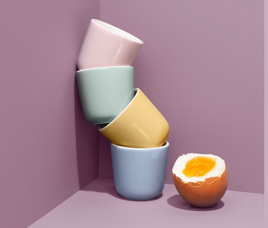 Diese vier Eierbecher sorgen für vier freundlich-pastellige Tupfer in verschiedenen Farben und bringen so ganz leicht frühlingshafte Vielfalt auf den Frühstückstisch. Sie sind aus hochwertiger Keramik gefertigt und fassen Eier bis Größe L.