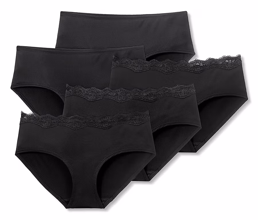Ob in Schwarz oder Weiß: Dieser Panty-Pack verdient ein High Five! Denn er enthält fünf hübsche Pantys, die durch ihren seidigen Glanz und die softe Microtouch-Qualität überzeugen. Drei der Pantys wurden zudem mit weicher Spitze verziert und wirken dadurch besonders feminin. Was alle Unterhosen eint, ist der hygienische Baumwollzwickel und das eingearbeitete Elasthan, welches dafür sorgt, dass die Unterwäsche lange schön bleibt.