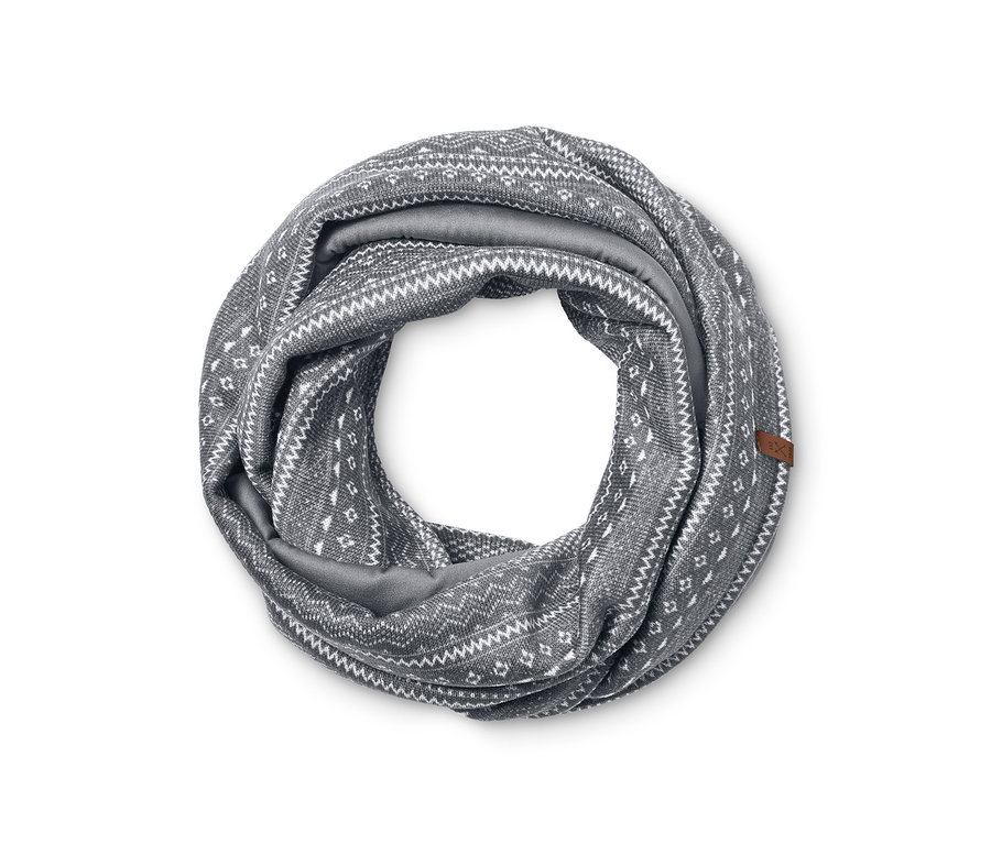 Man kann ihn drehen und wenden, wie man will – dieser Strickfleece-Schlauchschal hat zwei coole Looks, die absolut zeitlos sind. Das atmungsaktive Accessoire ist besonders weich und warm und hat eine Seite aus Strickfleece sowie eine aus Jersey. Eine der beiden Seiten ist mit einem modischen Alloverprint im Norweger-Dessin und einem Detail in Lederoptik verziert.