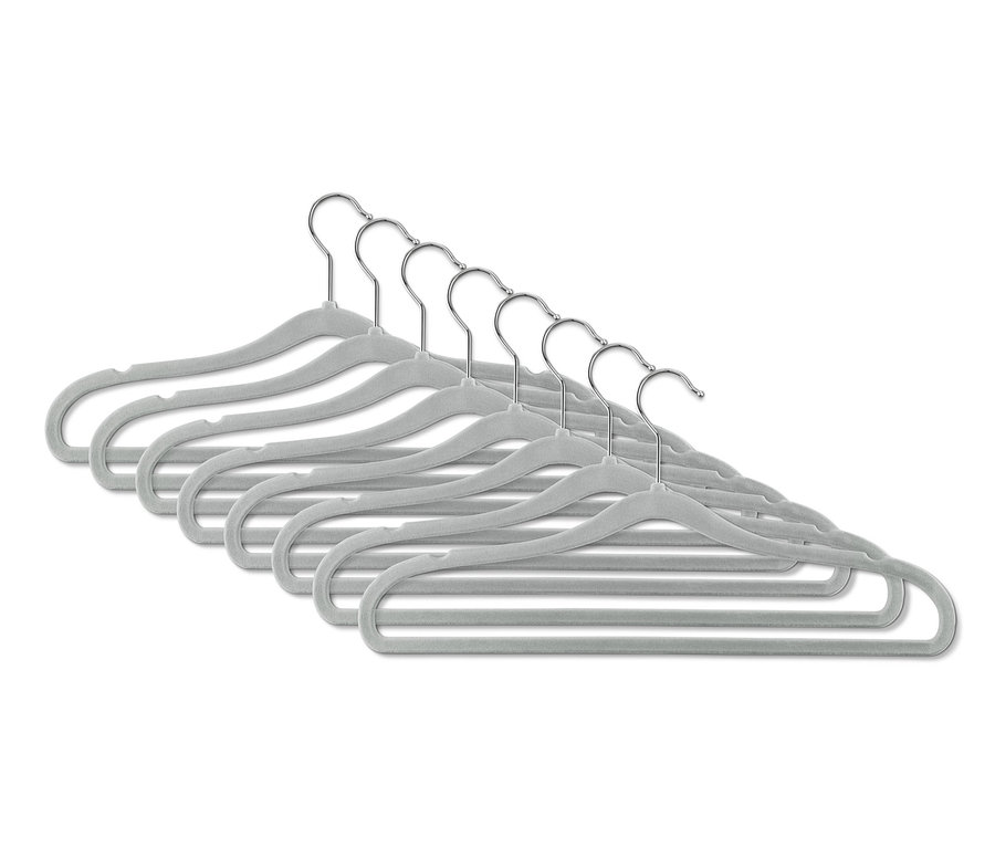 Mehr Platz und Ordnung im Kleiderschrank: Diese extraschmalen Kleiderbügel sind nicht nur platzsparend, sondern dank ihrer Beflockung besonders stoffschonend. Sie verhindert zudem, dass die Kleidungsstücke verrutschen. Die Querstrebe ist für Hosen und Röcke perfekt geeignet. Der Haken aus verchromtem Metall hat ein Drehgelenk und lässt sich daher bequem drehen.