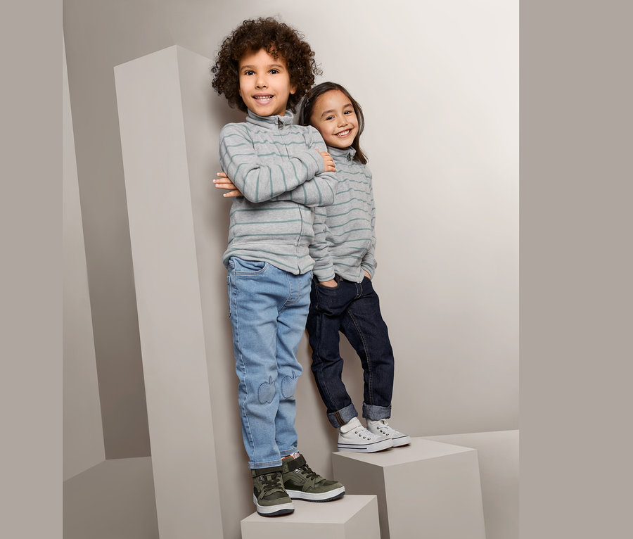Mit dieser schicken, sportiven Strickjacke haben die Kids ein bequemes Oberteil, das mit seinem hohen Anteil an nachhaltig angebauter Baumwolle und recyceltem Material angenehm weich auf der Haut liegt. Elasthan sorgt dabei für Formbeständigkeit, einen perfekten Sitz und zusätzlichen Tragekomfort. Die Kinder-Jacke hat einen coolen Stehkragen, ihre Oberfläche ist kuschelig weich angeraut und der durchgehende Reißverschluss ist mit einem Kinnschutz versehen.