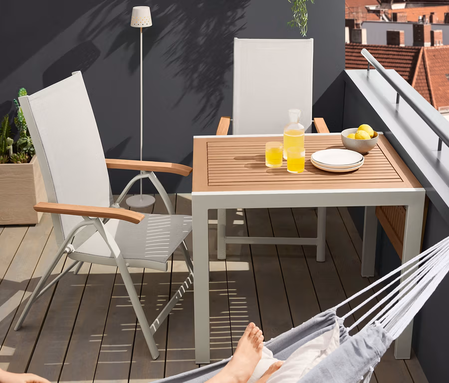 Pulverbeschichtetes Aluminium ist als pflegeleichtes Material besonders gut für Outdoormöbel geeignet. Außerdem ist es dauerhaft UV- sowie feuchtigkeitsbeständig, rostfrei und angenehm leicht.