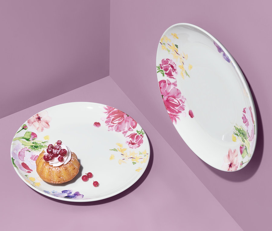 Frühlingsflair im Doppelpack: Mit diesen beiden Tellern aus Qualitätsporzellan holt man sich zu jeder Tageszeit den Frühling auf den Tisch. Ihr Aquarell-Blüten-Dekor sieht aus wie von Hand gemalt und setzt farbenfrohe Akzente.