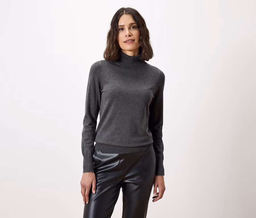 - Elastische Rippbündchen an Rollkragen, Ärmelabschluss und Saum