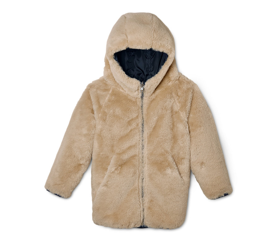 - Wendbare Kinderjacke: 1 Seite Kunstfell, 1 Seite Polyester