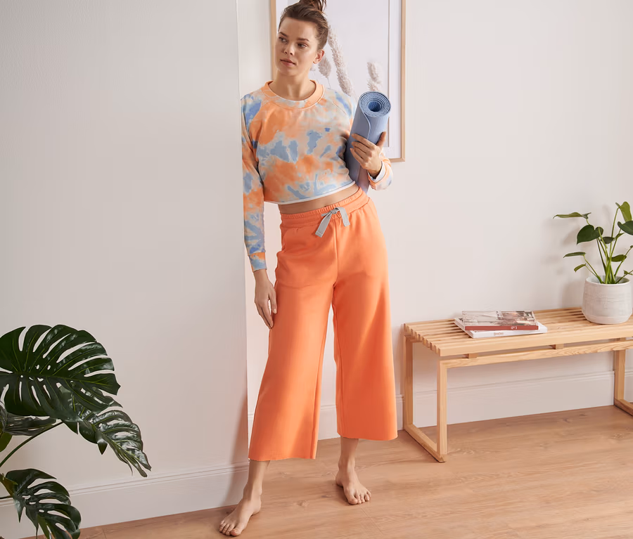 - Damen-Sporthose mit offener Kante am Saum
