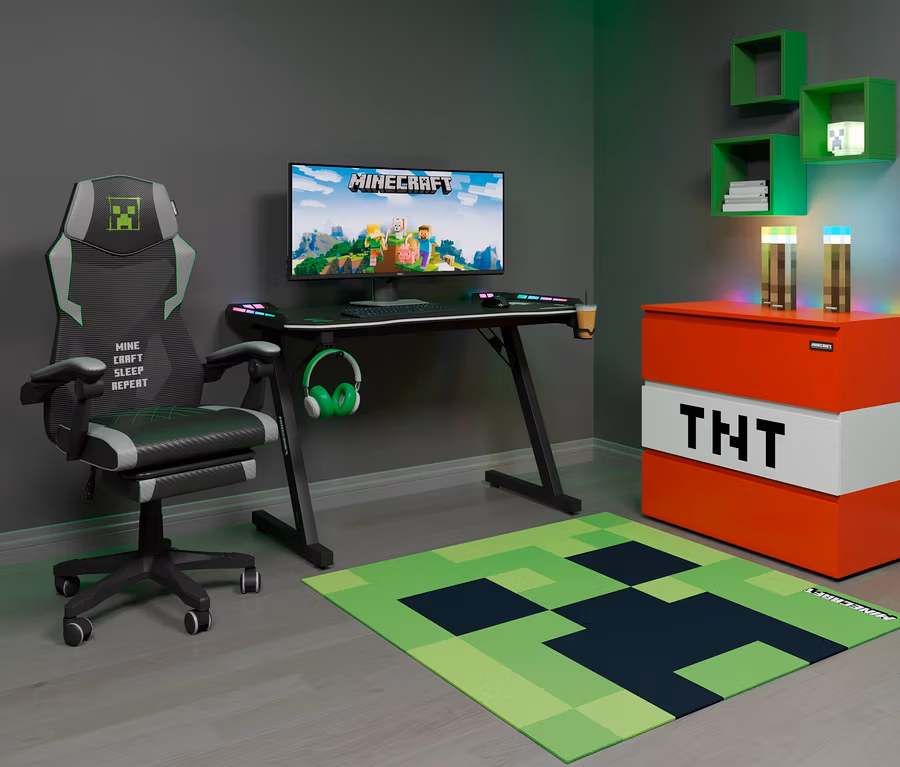 - Tischplatte schwarze Carbonoptik mit mehrfarbigem Minecraft-Print