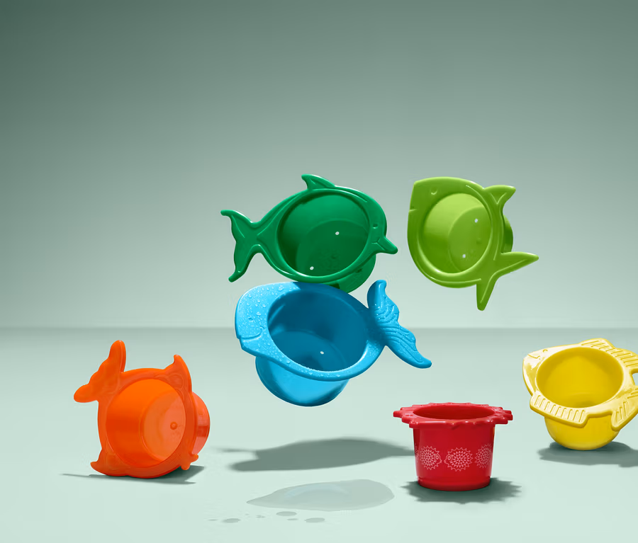 Viel Spaß am Strand! Oder im Schwimmbad oder im Garten ... Mit diesen sechs Spielbechern für Wasser, Sand oder schönen Matsch hat man überall Spaß, wo Wasser rauscht und man nach Herzenslust planschen kann. Drei der Förmchen haben einen Lochboden in Fischoptik, stapeln lassen sich die Becher sowohl ineinander als auch aufeinander.
