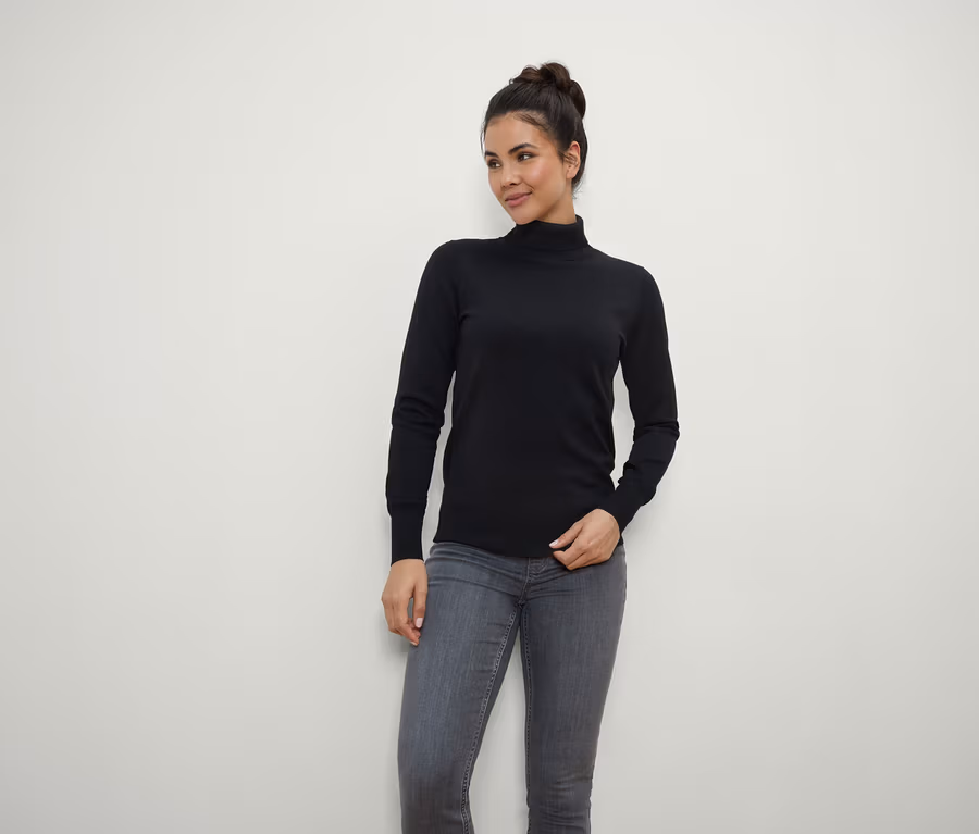 Feinstrick-Rollkragenpullover, schwarz