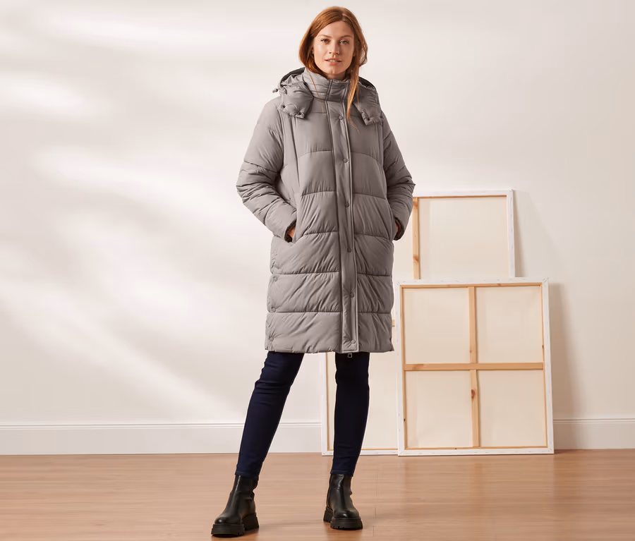 Steppmantel mit Kapuze, taupe